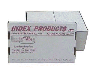 Click here for pricing and an on-line order form. ImprinTABle copier tabs are an instant solution for organizing tabbed On-Demand documents. ImprinTABle copier tabs are specifically packaged to survive shipment around the block or across the nation. Our 90# Index Stock provides the flexibility needed to go across your copier transport system. Try a case or more today! |